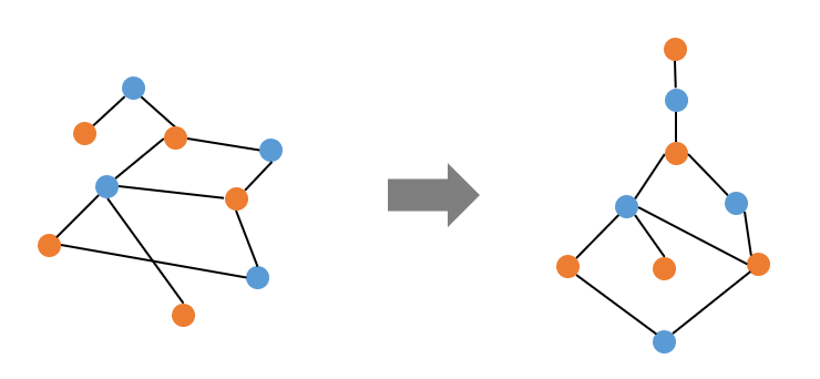 이렇게 각 포인트를 두 가지 색상으로 색칠한다고 할 때, 인접한 두 포인트(노드)의 색상이 다른 그래프를 말한다.