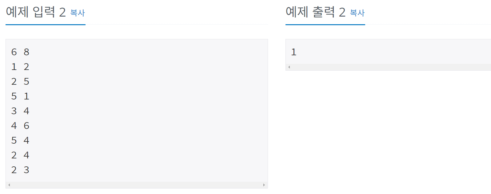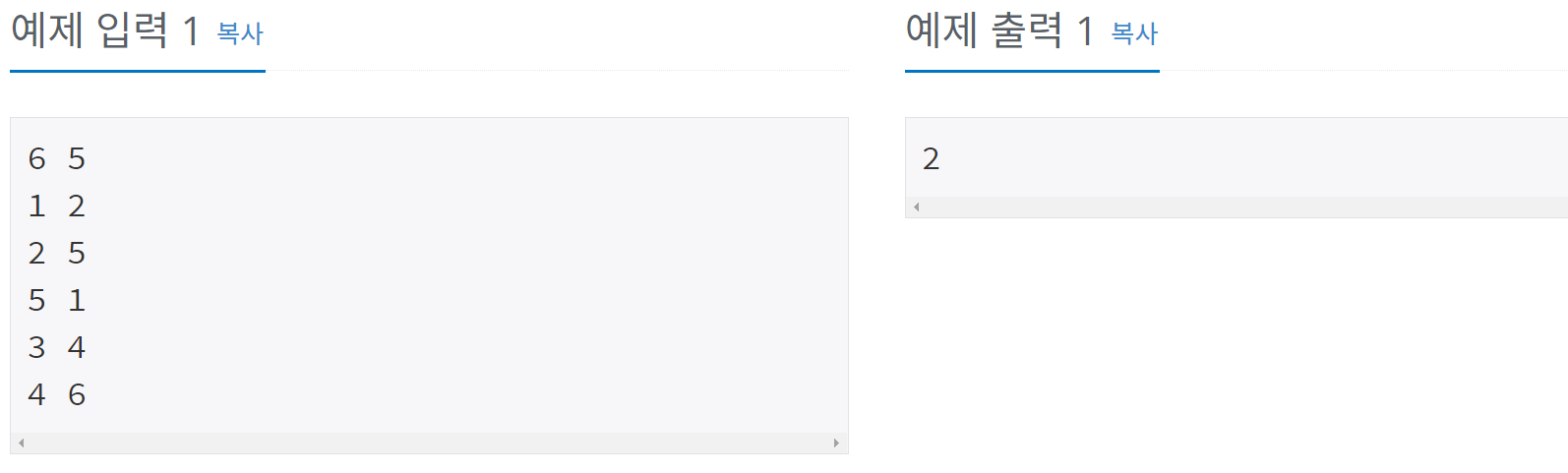 방향 없는 그래프가 주어졌을 때, 연결 요소 (Connected Component)의 개수를 구하는 프로그램을 작성하시오.