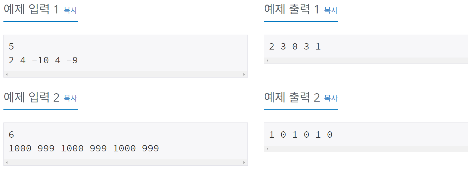 둘째 줄에는 공백 한 칸으로 구분된 X1, X2, ..., XN이 주어진다.