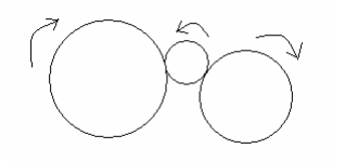 링의 반지름이 주어진다. 이때, 첫 번째 링을 한 바퀴 돌리면, 나머지 링은 몇 바퀴 돌아가는지 구하는 프로그램을 작성하시오.