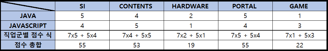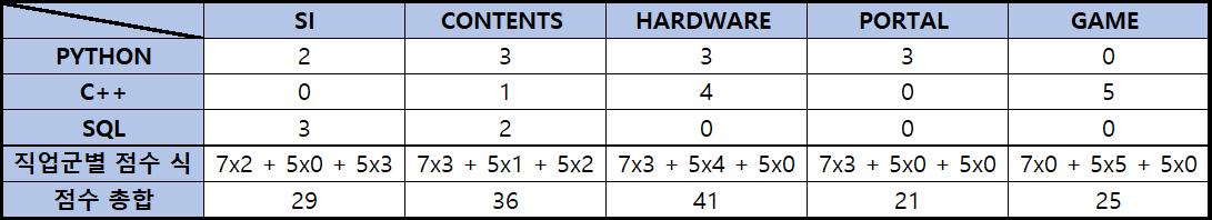 각 직업군 별로 점수를 계산해보면 아래와 같습니다.
