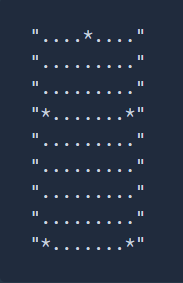 위의 그림을 문자열로 나타낼 때, 별이 그려진 부분은 *, 빈 공간(격자선이 교차하는 지점)은 .으로 표현하면 다음과 같습니다.