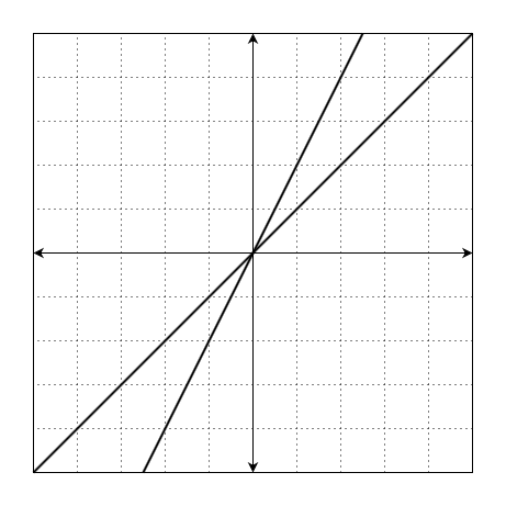 직선 y = x, y = 2x, y = 4x는 다음과 같습니다.
