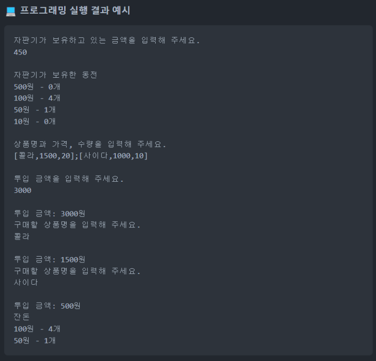 상품을 자판기에 입고하고, 돈을 투입하여 상품을 구매할 수 있습니다.
